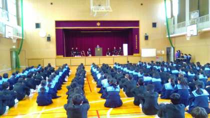 挨拶運動の強化、体育大会のさらなる充実、よりよい上中づくり等、候補者一人ひとりが生徒会活動に対する思いを述べ、聞く側も静かに真剣に聞いていました。