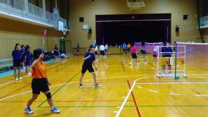 今日はバドミントン部が阪南中学校を招いて練習試合を行っていました。シングル、ダブルスともに1セットずつでどんどん相手を替え、対戦していました。