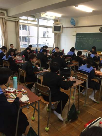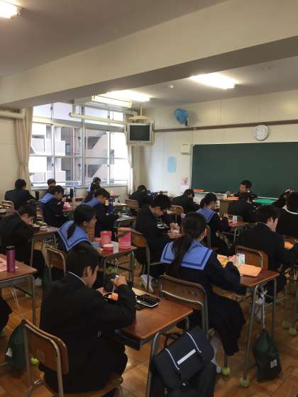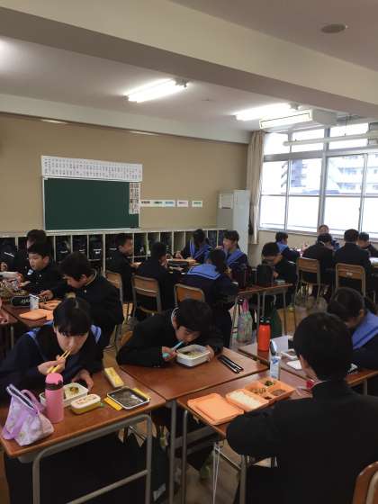 家庭弁当、学校給食が混じっていはいますが、なんとなく生徒たちもほっとした表情でした。