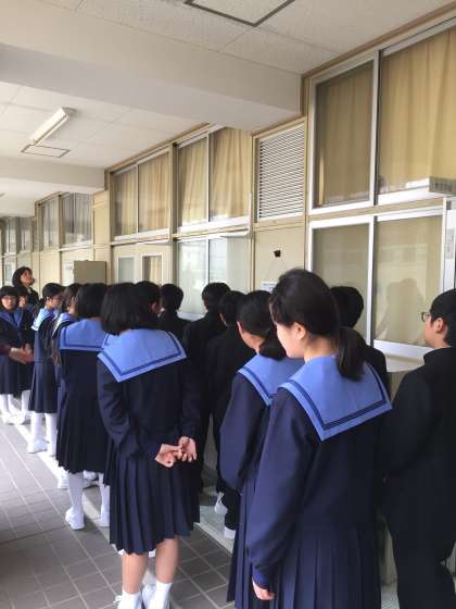 職員室前では、学級日誌や鍵の置場また1年の教員の座席などを伝え、