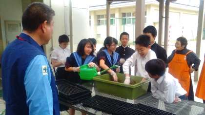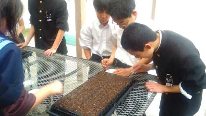 今年度も本校の特色である「種花活動」が始まりました。区役所や地域のボランティアの方々とともに、生徒会や有志のメンバーが土混ぜから始めました。区役所の方の「なるほど!」と思う、分かりやすい説明もあり、一つひとつの作業の意味を理解しながら進めていきました。