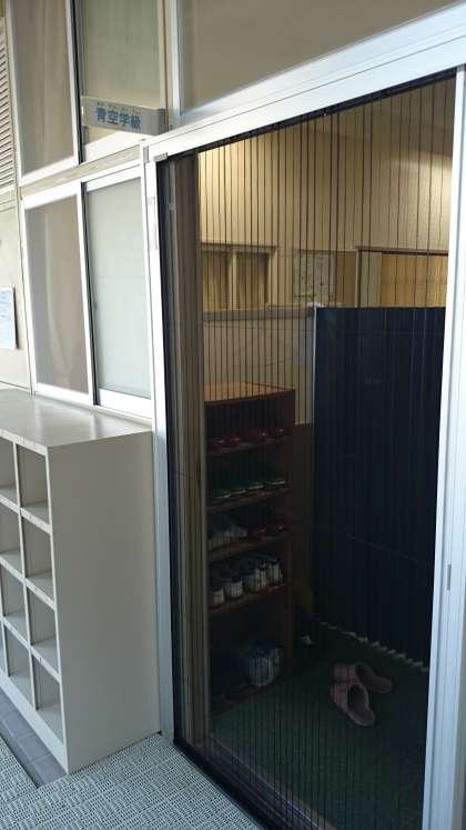 4、廊下側の窓3ヵ所と入口ドアに網戸取り付け