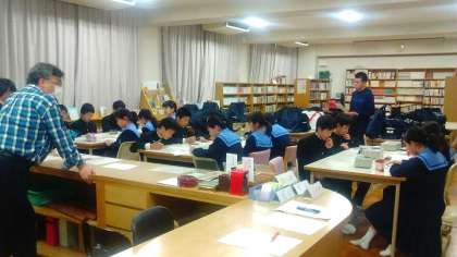 委員長が早く決まったところは、早速、委員長、副委員長が前に出て会の進行をしていた委員会もありました。(上から図書委員会、保健委員会です。)