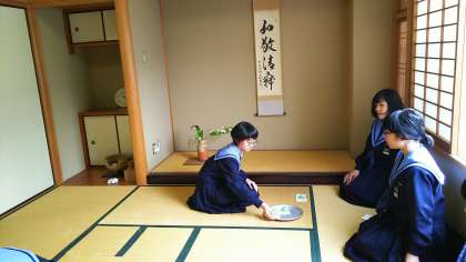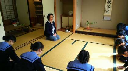 4月27日(木)に茶道のお稽古をさき山先生を講師にお迎えし、和室で行いました。