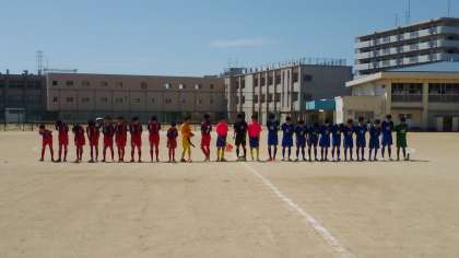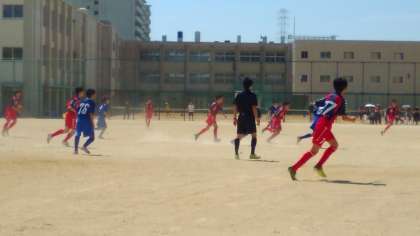 5月3日からサッカー大阪市大会の敗者復活戦が始まりました。わが上中は3日、1回戦を5−0で快勝し、4日西淀中学校のグランドで2回戦に臨みました。