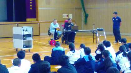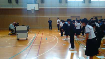 「心のバリアフリー」「人権としてのアクセス」など、私たちが考えなければならないキーワードがたくさん出てきて、非常に中身の濃い講話をいただきました。2年のみんなもメモを熱心にとりながら、集中して聞いていました。次は実際に車イスに乗ってみます。今日のお話を思い出して、実際どんな感覚・気持ちになるかを感じてみてください。