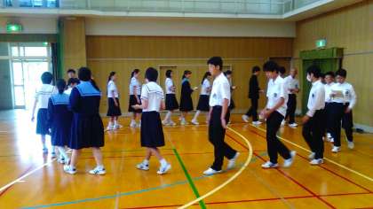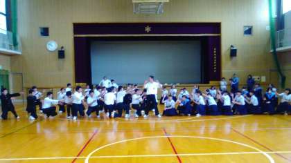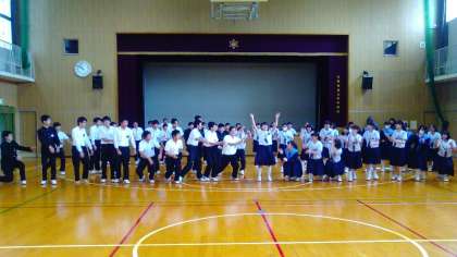 本日の土曜授業は、体育大会の全体練習を予定していましたが、あいにくの雨のために通常授業を行った後、各団に分かれて応援の練習を行いました。