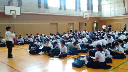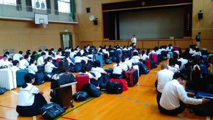 3年生は明日から2泊3日で修学旅行に行ってきます。今日は事前指導ということで、荷物点検を行いました。忘れ物がないか、名前をちゃんと書いているか等、細かいところまでチェックしました。