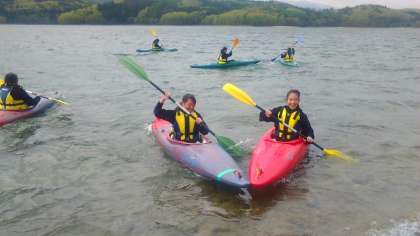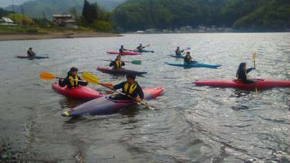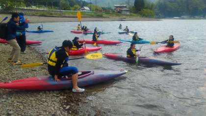 今日は、肌寒く風も強かったので、思うようにカヌーが操作できず、みんな悪戦苦闘していました。