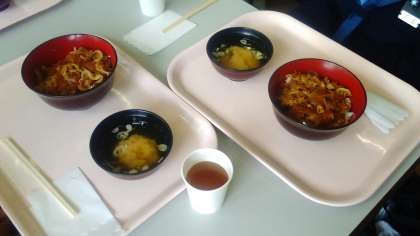 昼食は豚丼です。大盛りで入れてくれています。