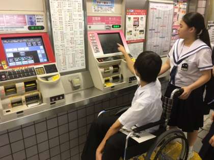 2年生はこれまで勉強してきた車椅子体験学習の本番として、学外に出て車椅子体験を行いました。