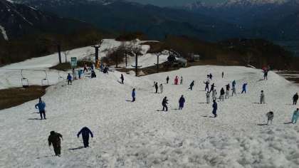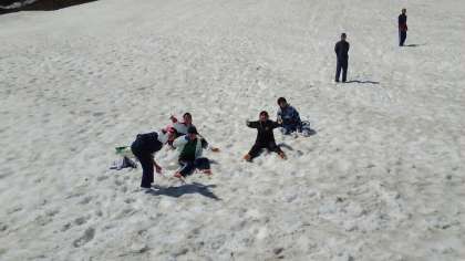 男子も女子も雪と汗で、びちょびちょになっていました!