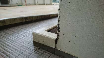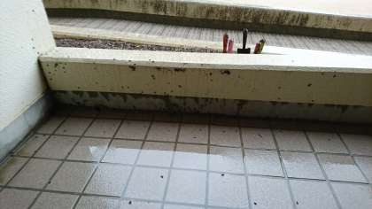 朝、学校に来てみると、青空教室前の廊下にダンゴムシが大発生していました。