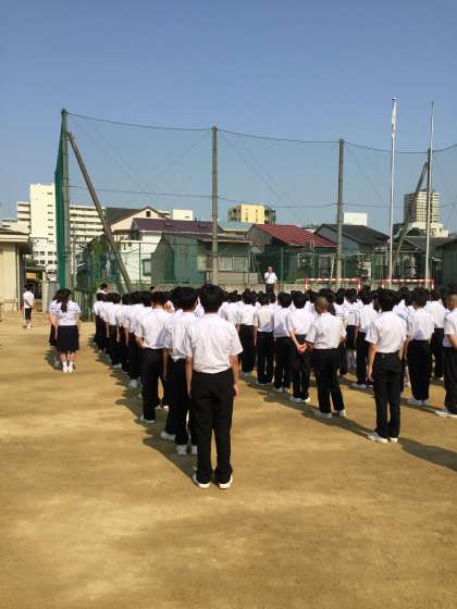 本日も晴天の下、生徒集会が行われました。校長先生からは、「障がい」のあるハリウッドスターを例に挙げ、パラリンピック選手等も含めて、困難な状況と闘いながらも自分の夢をあきらめず、努力を重ね、活躍する人々から勇気をもらい、悩みに負けないでどんなことに対しても前向きに取り組もう。また、華々しい舞台に立っていない「障がい」のある方々も、日々努力を重ねて前向きに生きておられることに尊敬の気持ちを持って、その方々から学んでほしい、というお話がありました。