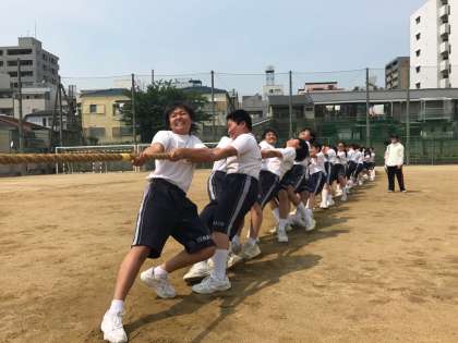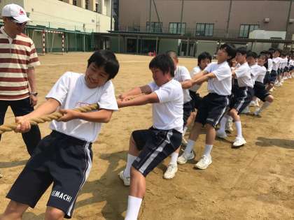 綱引きでは、違う予選グループと対戦し、綱を引く感覚、姿勢などを確認しました。それでも開始の笛が鳴ると、全力で思いっきり引っ張る姿に、応援の先生方も思わず力が入っていました。