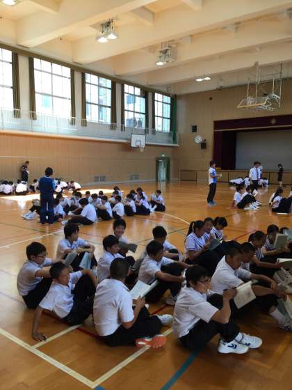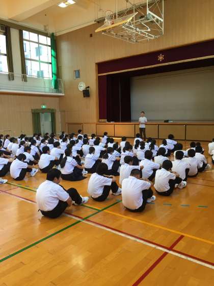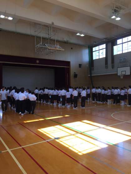 今日は、体育館でバス乗車の隊形をはじめとし活動班や部屋ごとへの並びかえなどをしました。