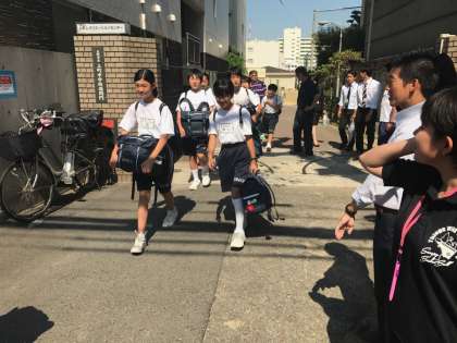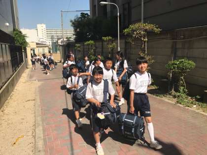 快晴にも恵まれ、1年生のみんなも笑顔で楽しそうにバスに乗り込んでいきました。