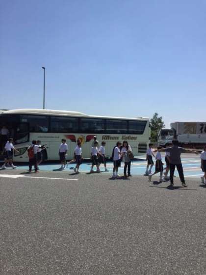 トイレ休憩です。見事な快晴です。午後のカッター活動が楽しみです。