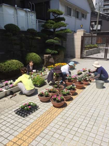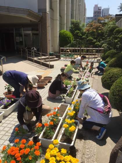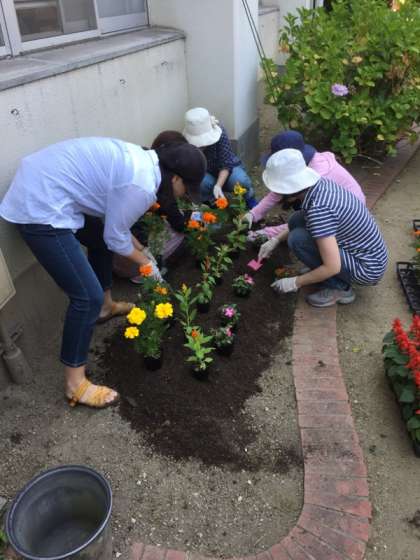 本日、好天の中、PTA緑化委員会の皆さんが、花の苗の植え替えを行ってくれました。暑い中でしたが、帽子をかぶり、てきぱき作業を進めていっていました。