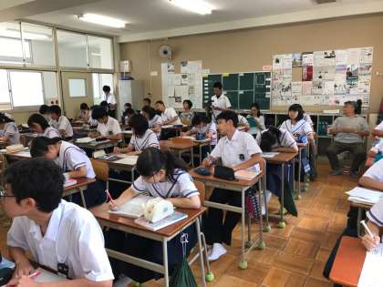 3時間目は国語の研究授業でした。授業者が一番緊張している感じがひしひしと伝わってきましたが、最後まで授業をやり切りました。たくさんの先生方が参観に来られてたので、しっかりとアドバイスを聞いて自分のものにしていってほしいと思います。