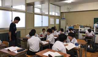 1年生は先日1泊移住が終わり、中学校生活にも少し慣れてきて、お互いに打ち解けた雰囲気の中、最初からどの子も問題集を広げて、解きながら友達に聞いたり、丸付けをしながら今まで習ったことの確認作業をする生徒が多くいました。