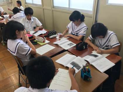 今日の3年生の道徳は、副担任の先生方が各クラスで授業を展開しました。信頼・友情をテーマにした「友情」や、人間理解と生きる喜びをテーマにした「狂おしい夏」などを映像教材も交えながら実践していました。グループで話し合ったり、ワークシートも使いながらみんな一生懸命考えていました。
