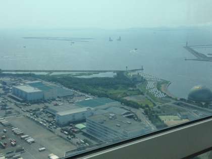 庁舎の50階の会議室で選抜された各校の代表が、担当者からレクチャーを受けました。内容は「2025年 大阪万博誘致活動」がメインでした。実際に誘致で使われたプレゼンビデオを見たり、大阪万博の会場になる夢洲の見学など盛りだくさん。