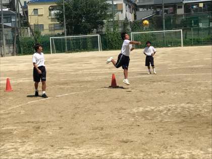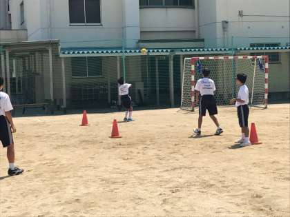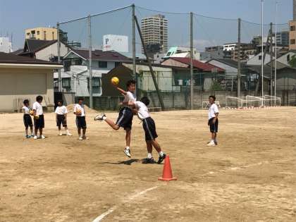 今年度できたハンドボール同好会も、炎天下のグランドで練習に励んでいます。部員は1年生のみで14〜5名いますが、夏休みはなかなか人数がそろわず、少ない人数で頑張っています。当面の目標は秋の公式戦に出場することで、今、二塚先生からオフェンス、ディフェンス両面を急ピッチで教わっています。最初に比べると、形になってきている子も増えてきて、試合を観るのが楽しみになってきました。暑いですが頑張りましょう!