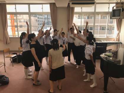 この4か月間、この大会に照準を合わせて猛練習を行ってきた合唱部のメンバーにとっては、決戦に臨む気持ちだと思います。出発前の大江先生のお話では、これまで自分たちのやってきたことを信じて、とにかく楽しんで歌おうということが確認され、全員で気合を入れる掛け声をかけ、出発していきました。結果はどうなるか分かりませんが、ここまでの合唱部の雰囲気、意気込みを見る限り、この4か月の成長がハッキリと確認できました。あとは全力を出し切るのみ。ファイト、上中合唱部!