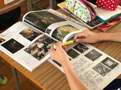 今日の3年の美術では、プロジェクターを使って有名な画家の美しい作品を観ながら美術史を学んでいました。レンブラントやフェルメールの作品を鑑賞して、光と影の表現法を学習したり、新古典主義などの美術界の流れ・歴史を学んだりしていました。もし、機会があれば美術館に行っていろいろな本物の作品を観てほしいと思います。