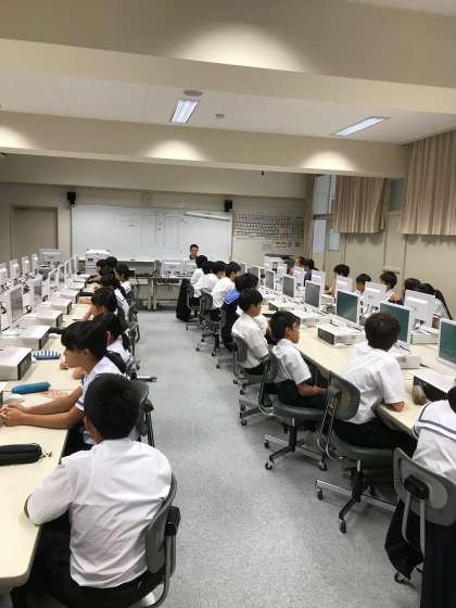 班によっては教室でのタブレットで作業がかなり進んでいるところもありますが、多くの生徒は初めて使うソフトで、最初に簡単な講習を行いました。
