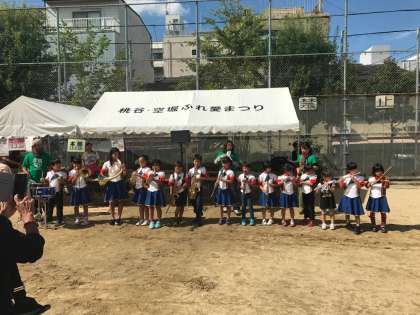10月8日(日)汗ばむ陽気の中、「空堀・桃谷ふれ愛まつり」が行われました。今年はオープニングで、いろんな小学校から集まった小学生による器楽演奏があり、華やかな幕開けとなりました。