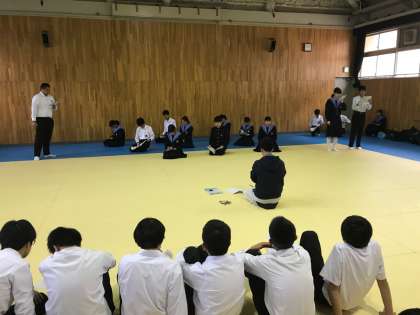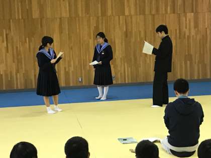 いよいよ文活に向けてどの学年も準備・練習が本格化してきました。3年生は演劇に取り組んでいます。舞台に立つ演者は、台本を持っての2回目の立ち稽古を行いました。楽しい雰囲気の中にも演技が始まると真剣な表情に切り替わり、出番待ちの人たちも台本を目で追って集中していました。