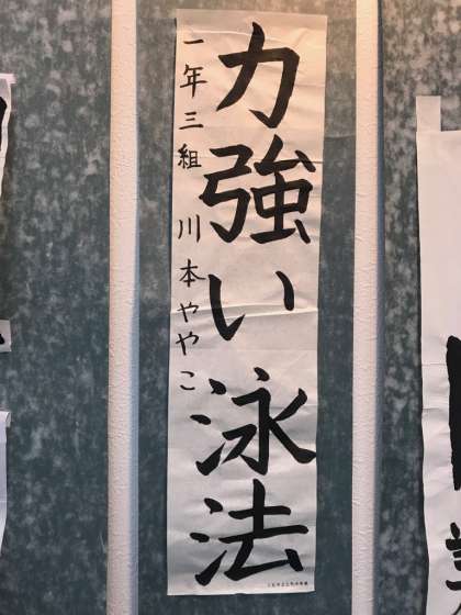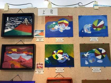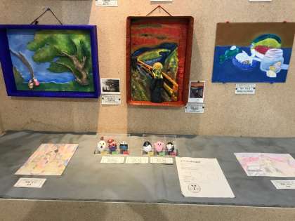 美術部は静物の油絵と、有名な作品を立体的に模写する作品、また卵の殻を使った可愛いキャラクターの置物も出品していました。部活動ではありませんが、国語の書道の作品も1点展示されていました。