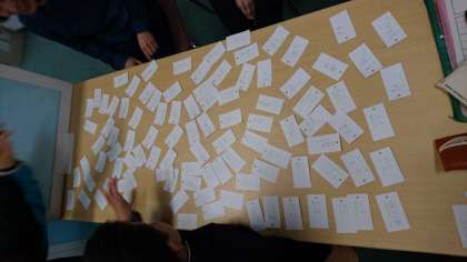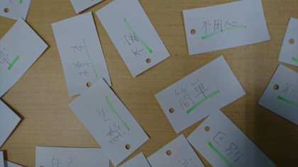 生徒自作の漢字カルタで、楽しく熟語の学習に取り組みました。