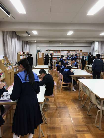 今日は雨で運動場が使用できないため、図書館が多くの利用者でにぎわっていましたが、平常開館は14日までです。(18、19日は貸し出し・返却だけの開館をします。)また、現在は冬休み前の特別貸し出し期間ですので5冊まで借りることができます。