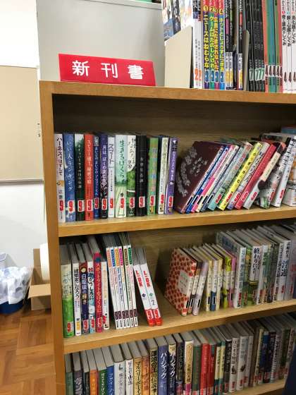 貸し出しが集中して書架がすいていますが、新着本も開架棚に並んでいますので多くの生徒の来館を待っています。