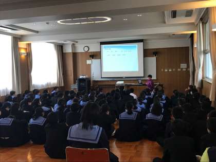 今日の総合の時間、2年生は進路学習を行いました。柚木原先生がパワーポイントを使って、様々な進路についてのお話をしてくださいました。例えば、「高校進学」と言っても様々な種類があることなど基本中の基本ですが、2年生にとっては知らないことも結構あったのではないでしょうか。これを機会に先輩の今の姿をしっかり見て、今から自分の進路について真剣に考えていってほしいと思います。