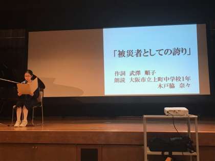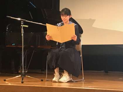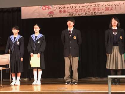 1月20日(土)にCFKチャリティフェスティバルが開催され、上中から生徒会メンバーが4人と合唱部が参加しました。詩の朗読をしてくれた2人は、緊張の中、高校生の2人に負けないくらい感情を込めて上手に読み上げてくれました。