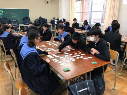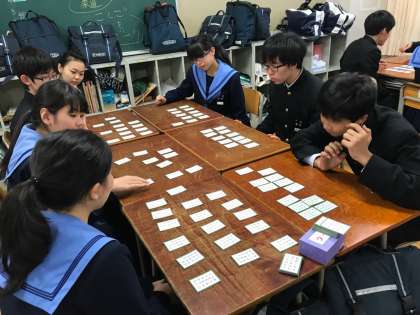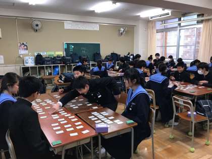 2年の国語では、百人一首に取り組んでいます。今日は各班に分かれて競技を行いました。上の句だけで札を取る人もいましたが、全体としてはまだまだ学習の余地がありそうです。8日(木)には、学年の百人一首大会が行われます。それまでに一つでもたくさん覚えて、班、クラスのために貢献できるようになっておこう!