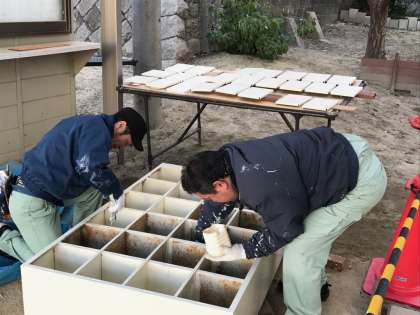 卒業式に間に合うように、この極寒の中、外での作業を黙々と進めています。一つひとつ完成していくと、体育館もきれいになったような気持ちになります。皆さんの見えていないところで、こんな努力をしてくれている管理作業員さんに心から感謝してほしいと思います。管理作業員さん、ありがとうございます!
