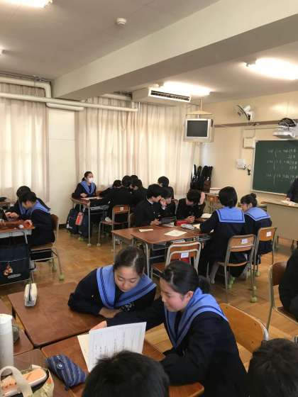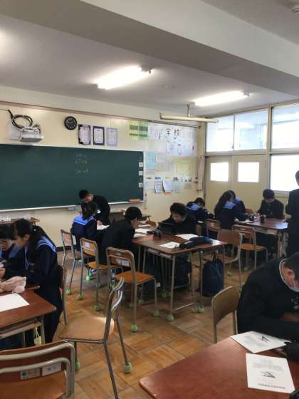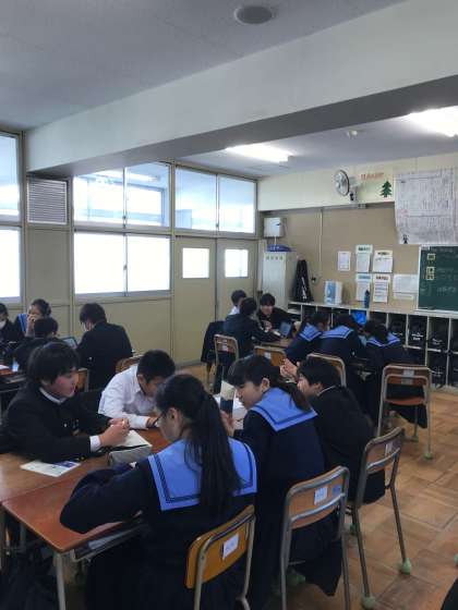 1年生では、昨日のSPトランプに続き、各学級タブレット10台を使い、自分の興味のある職業や進路について調べ学習をしました。