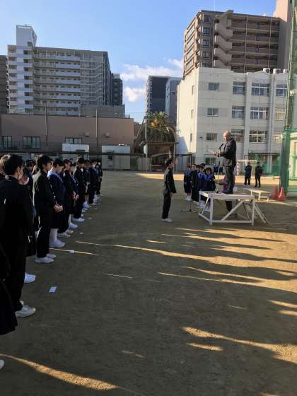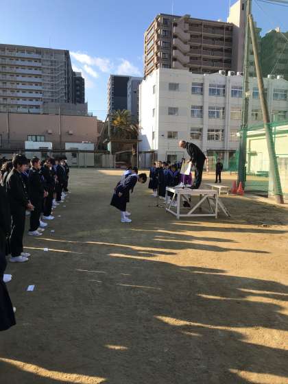 その後、野球部と、「伝えよう!いのちのつながり」入選者2名の表彰状伝達が行われました。最後に重松先生から3年生に対して、私立入試結果に関わらず、まだまだ試験が控えている人たちのことを考えた行動をとっていこうというお話がありました。進路、卒業を目の前にした今こそ3年間の集団づくりの成果が問われます。3年生全員が名残惜しさの中にも希望を抱いて卒業していけるように、残された日々を仲間のことを考え、大切にしていこう!
