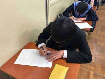 3年生は、5時間目に卒業文集づくりを行いました。すでに清書に入っている人もたくさんいましたが、何について書こうかとすごく迷っている人もいました。3年間の想い出なのでたくさんあって決めかねる気持ちもよく分かります。しっかり考えて自分らしい文章を書きあげてくださいね!