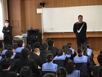 卒業までカウントダウンに入った3年生ですが、今日は最後の学年集会が持たれました。最終回は二塚先生から、「飛ぶ鳥跡を濁さず」「有終の美を飾る」などの言葉を引用し、卒業に向けて今の自分たちの生活を再度見直し、きっちりとした形・中身で全員が気持ちよく卒業していこうというお話がありました。一部の人ですが、今までの生活から「最近、何か変わったなあ」、「心配やなあ」と思ってしまう人が3年生の中にいます。3年間ともに過ごした仲間全員で素晴らしい卒業式を迎えられるように、仲間として心配な人にも声をかけ、残り少ない日々を気持ちよく過ごしてほしいと思います。