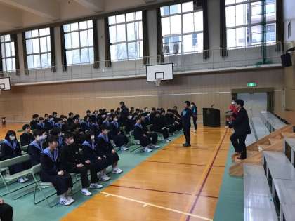 今日から3年生が卒業式の練習を始めました。入場で歩くコースや自分の席への入り方、起立・着席、礼の仕方、卒業証書の受け取り方など、細かい部分も全員揃えて美しいものにしようと松岡先生が熱心にお話しておられました。