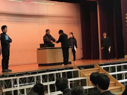 卒業証書を受け取る最初の方の人は全く初めてなので、先生方に一つひとつ教えてもらいながら、動き方や返事の仕方を体得していってました。練習ということもあり、笑顔の人が多かったですが、本番ではどうなるでしょうか?