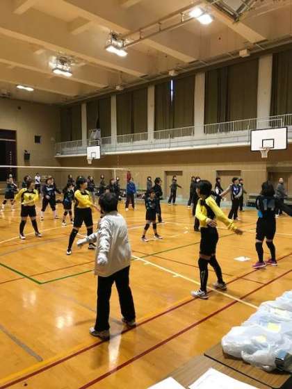 3月4日の日曜日に、上町中学校の体育館で、体育施設開放利用の校下のママさんバレーボールチームに6チームによるバレーボール大会の上町杯が開催されました。毎年1回の開催を続け、今年は30周年にあたるそうです。前日の夜の会場準備から当日の開催まですべて自主開催で行ない、合計7試合の熱戦が繰り広げられました。