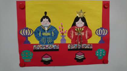 生徒が制作しましたが、可愛い「お雛様」と「お内裏様」の穏やかな表情を見ていると、ほっと心が癒される思いです。