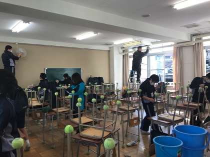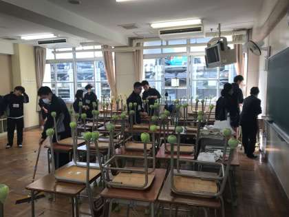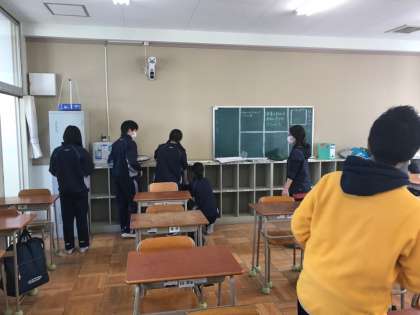 今日は、公立高校の一般選抜試験のため、本校3年生の約3分の2の生徒が受験に行きました。絶対に普段の実力を発揮して、目標を突破してほしいと思います。今日受験しない生徒は、朝から各教室をきれいに掃除してくれています。新3年生に気持ちよく使ってもらうために、隅々まで丁寧に清掃作業をしていました。中学校での最後の掃除です。きっちりやって気持ちよく卒業していこう!